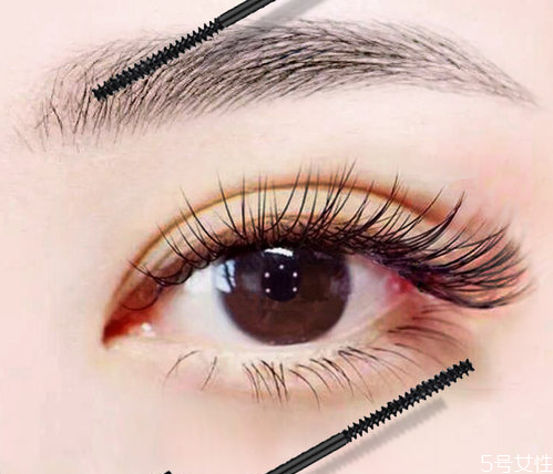 第六步:最后夾翹睫毛后,用纖長(zhǎng)型睫毛膏將上下睫毛從里向外刷好。
