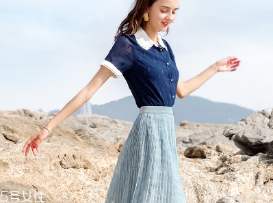 藍(lán)色的百褶裙也是非常夏天的,而且藍(lán)色還很顯白,在夏天給人一種很涼爽的感覺(jué)。