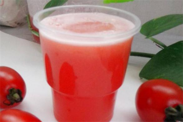 做法:選20—30個圣女果去蒂,洗干凈,切成小塊,再將一個蘋果洗凈切成小塊,放入榨汁機(jī)中攪拌均勻,加入適量的糖即可飲用。