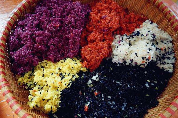 每年農(nóng)歷三月初三或清明節(jié)時節(jié),廣西各族人民普遍制作五色糯米飯。壯家人十分喜愛五色糯米飯,把它看作吉祥如意、五谷豐登的象征。